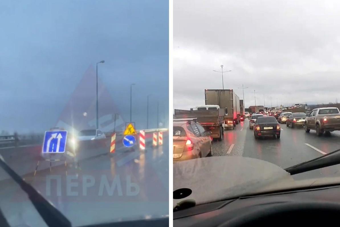 Коллапс на Красавинском мосту: левая полоса перекрыта, пермяки не могут доехать до центраПроблемы начались в конце октября, когда на дороге образовалась яма