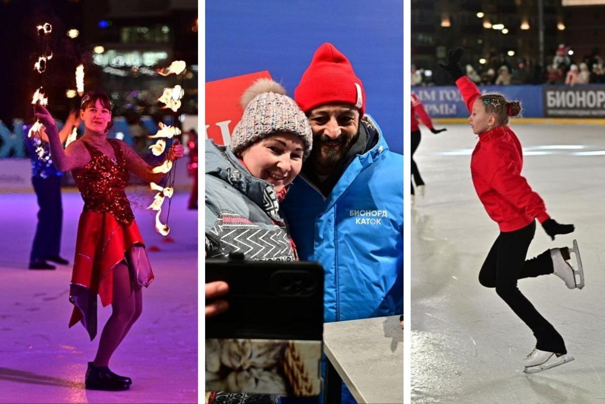 У Театра-Театра открыли центральный городской каток — фото с фаер-шоу и мастер-класса фигуриста Ильи АвербухаСобрали яркие моменты праздника