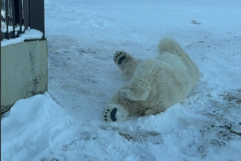 Пермский зоопарк опубликовал забавное видео с купающимся в снегу белым медведем СэрикуПосмотрите на эти кадры!
