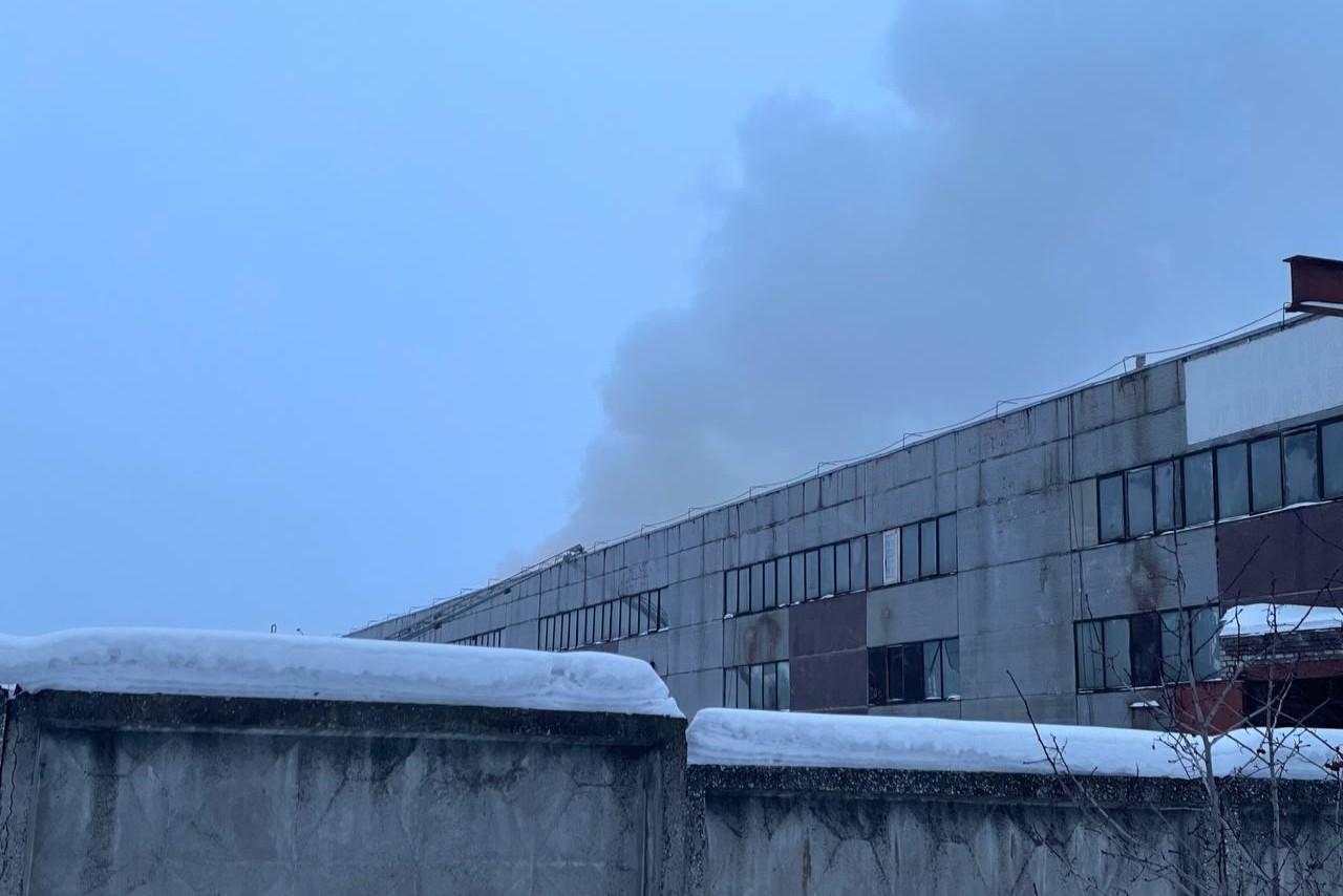 «Огонь и дым видно из домов на улице Строителей»: в Дзержинском районе два часа горит крупный складНа месте ЧП работают спасатели