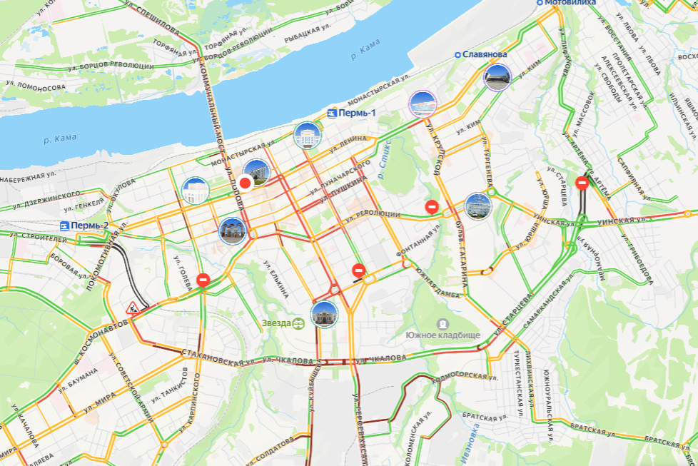 Стоят и центр, и Коммунальный мост: Пермь застыла в девятибалльных пробкахРассказываем, где сейчас сильные заторы