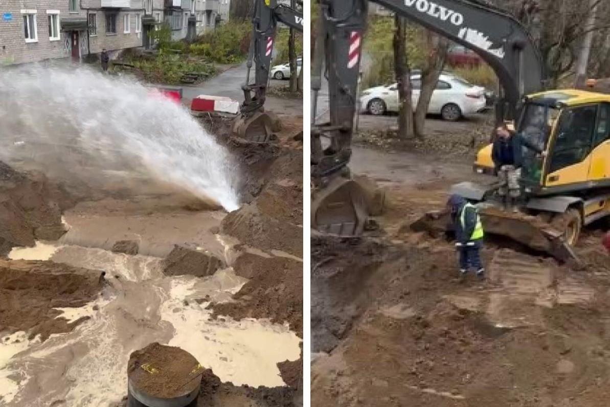 В Перми забил «гейзер» — микрорайон Светлый заливает из пробитой трубы в месте большого ремонта. ВидеоНа стройплощадке образовался водопад