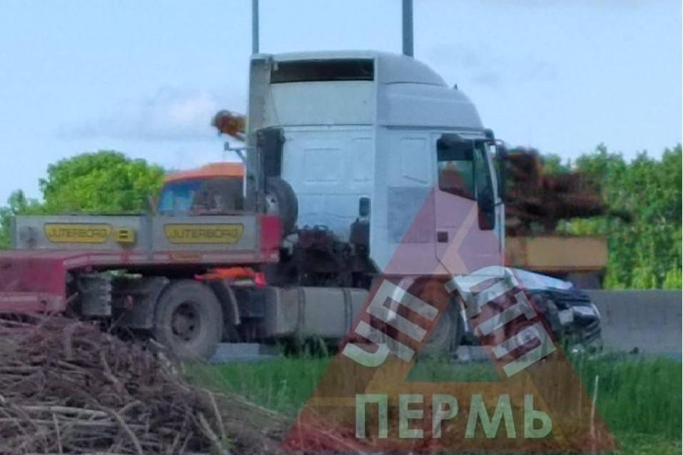 На трассе Полазна — Чусовой ВАЗ столкнулся с бордюром, а потом — с грузовиком: легковую буквально смялоНо водитель, говорят в полиции, остался жив